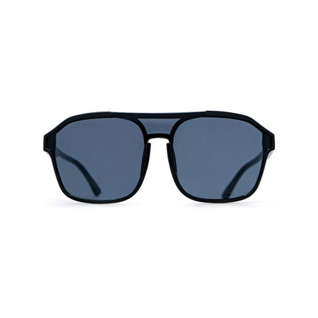Lunettes de soleil pour homme destinées aux personnalités fortes et puissantes, inspirées par l’atmosphère chaude et ensoleillée de l’État du Grand Canyon. Elles se caractérisent par une monture noire brillante et des verres gris.
