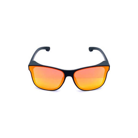 Lunettes de soleil mixtes, au design sportif et décisif, avec une monture noire mate et des verres miroirs rouges.